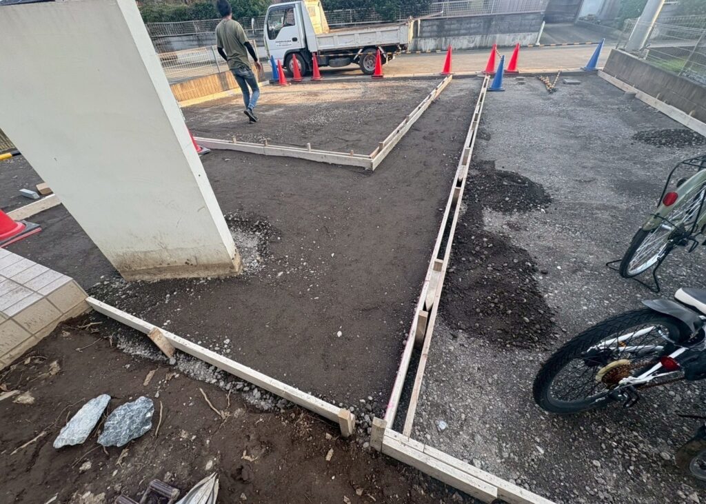 ★新しいアプローチ 土間コンクリートの型枠です