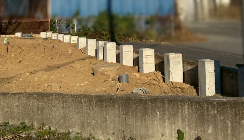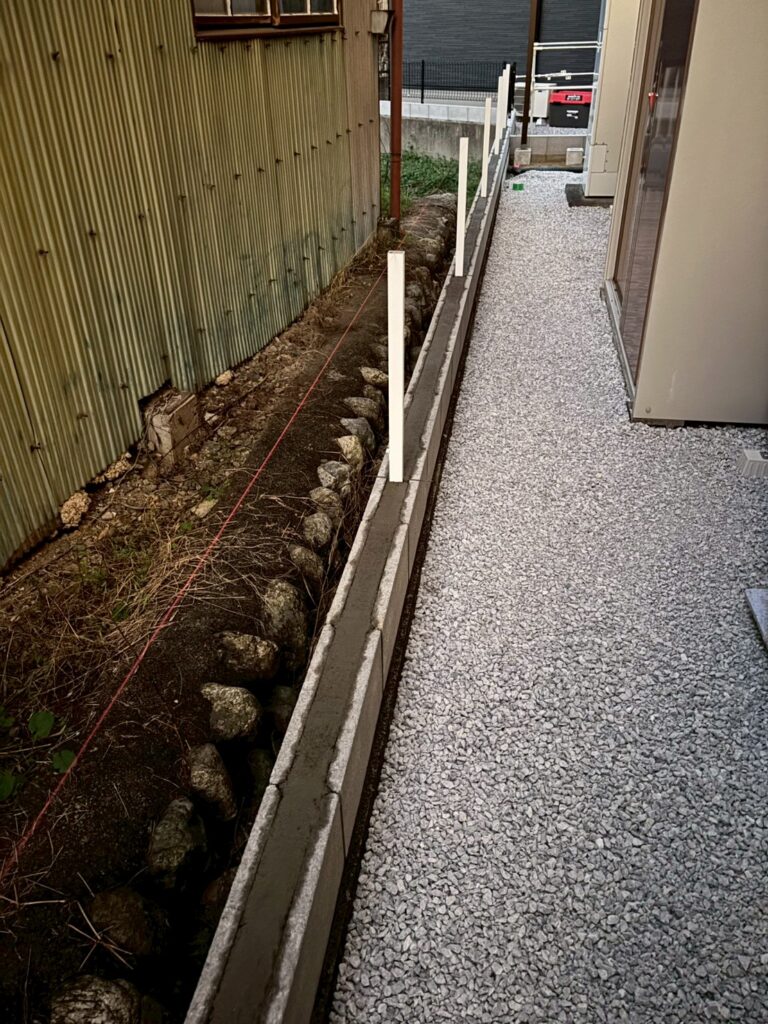 家の裏側 新たに積んだブロックの上にフェンスを施工します