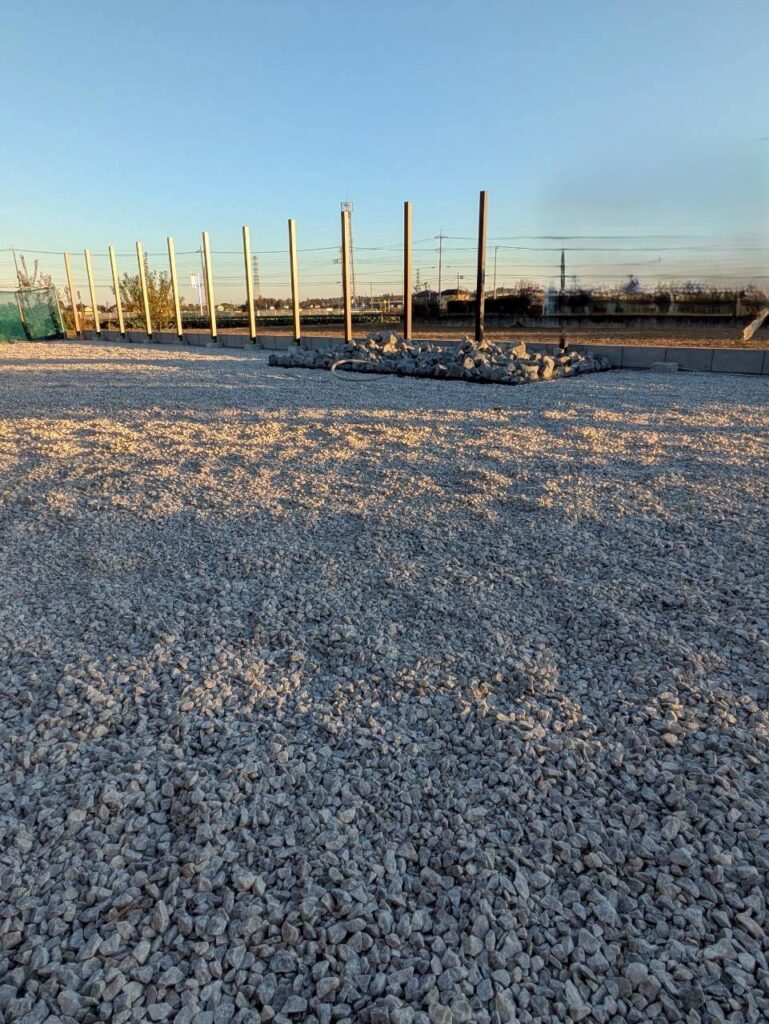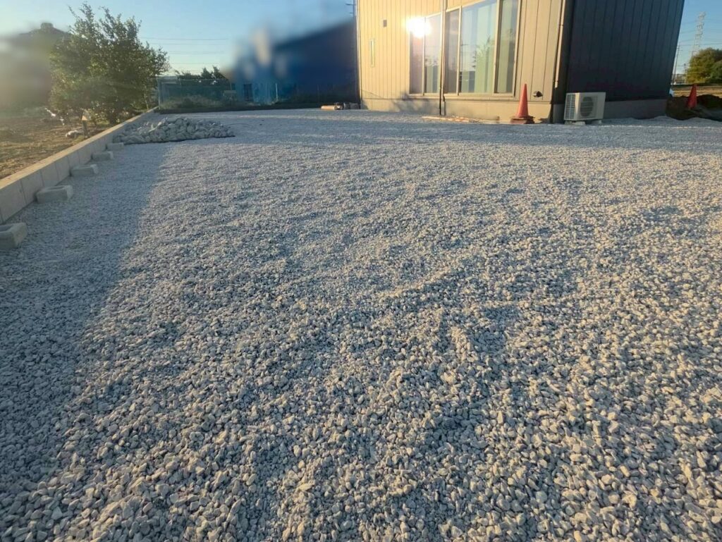 ★整地後 全面白ビリ施工しました 一部花壇のスペースは 人気のロックガーデンです