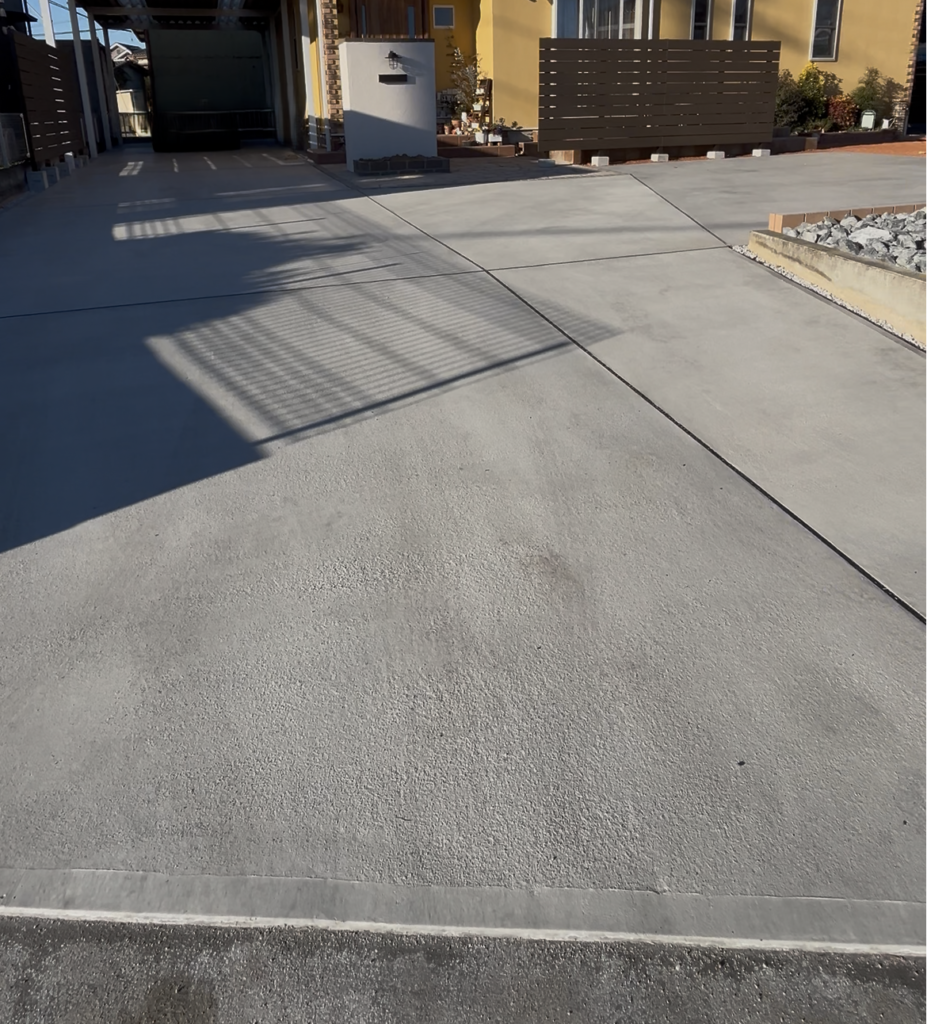 ★土間コンクリート入り口付近は勾配があるので 刷毛引きで仕上げました