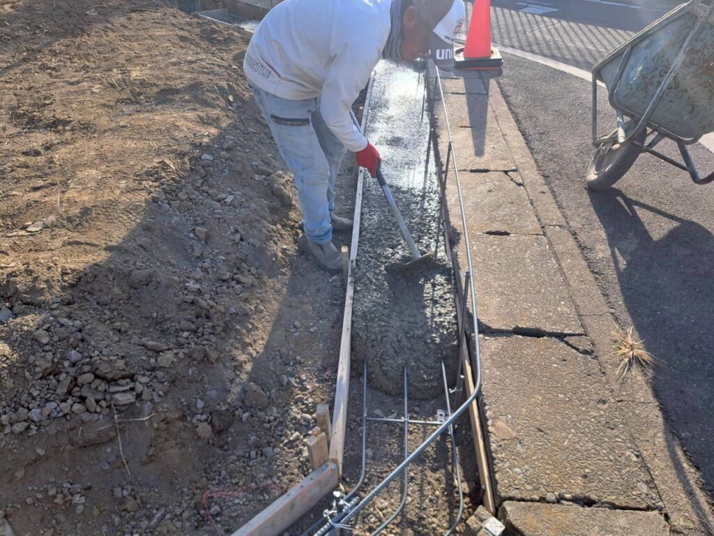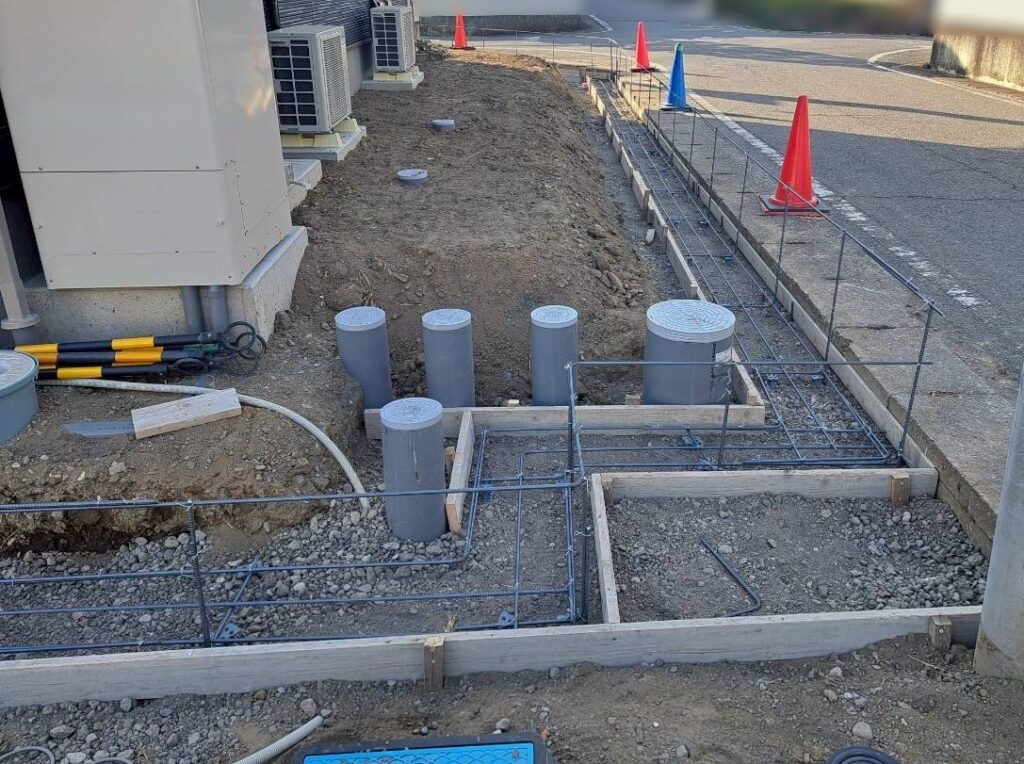 ★ブロックやフェンスを支えるために、地中にコンクリートの基礎(ベース)を打つ作業です