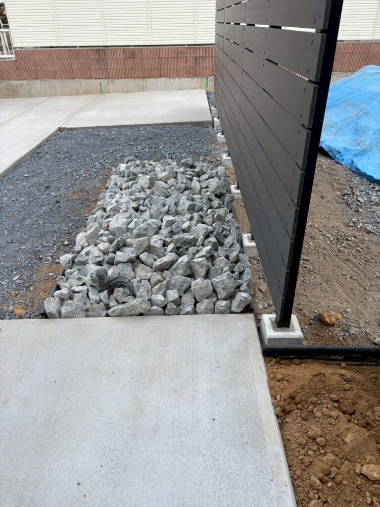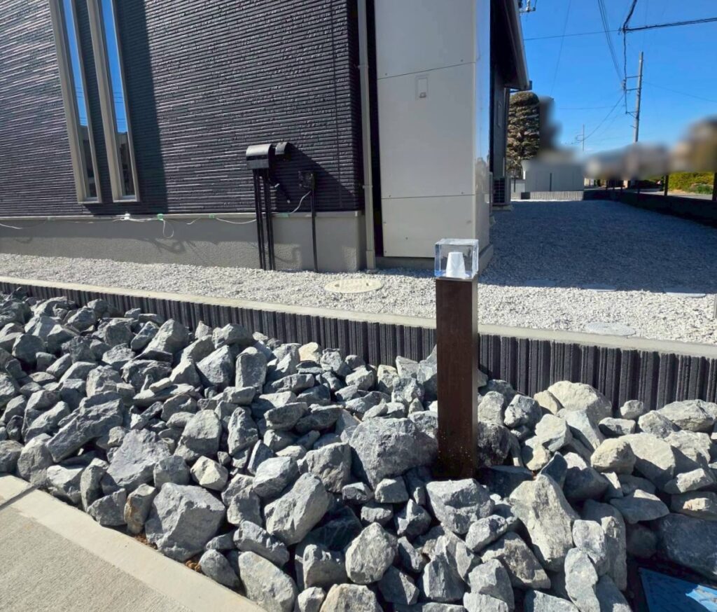 ★アプローチ横と目隠しフェンス前の花壇は 人気のロックガーデンです