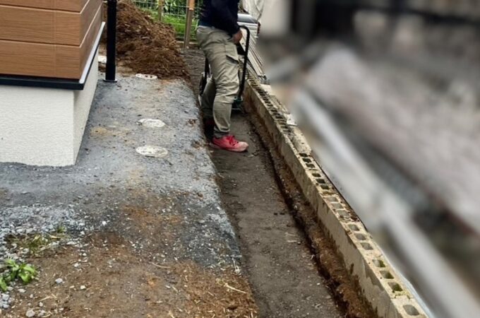 埼玉県本庄市外構エクステリア 群馬県伊勢崎市外構エクステリア 新築外構 着工 掘削 手掘り