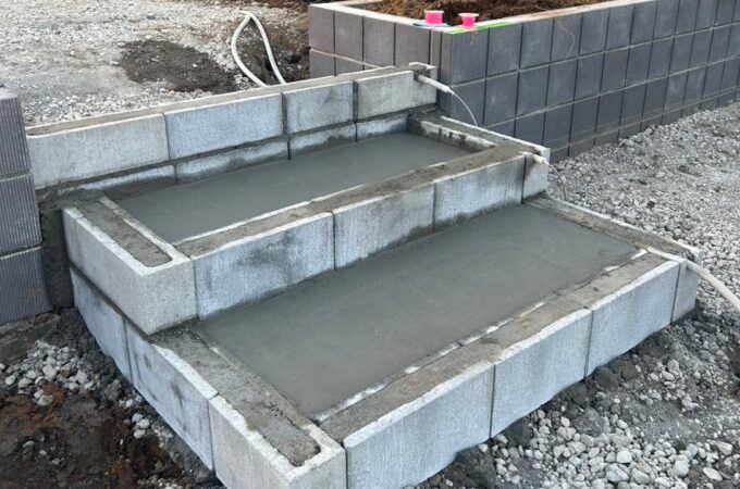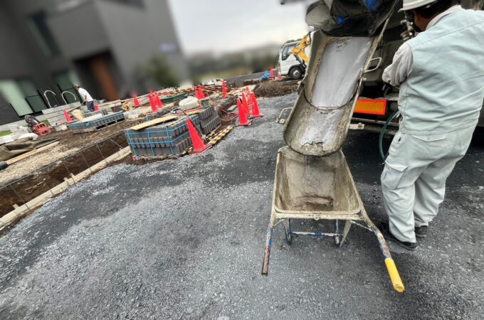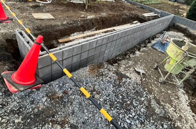 ★施工の様子の動画はこちら★ ベース基礎打設 ★土留めのブロックのベース基...