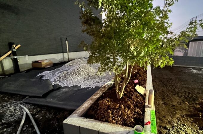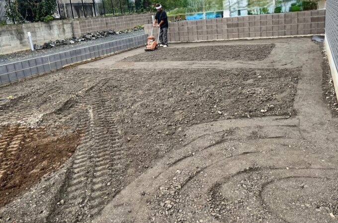 人工芝 ★整地後、防草シートを敷いて人工芝を敷きなおしました ...