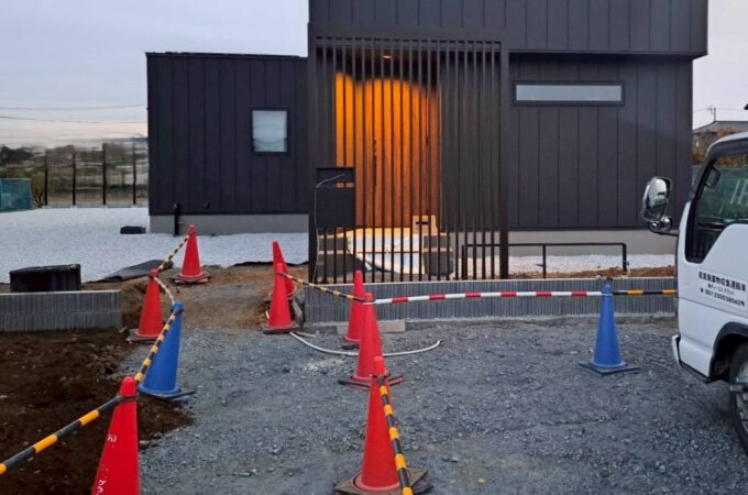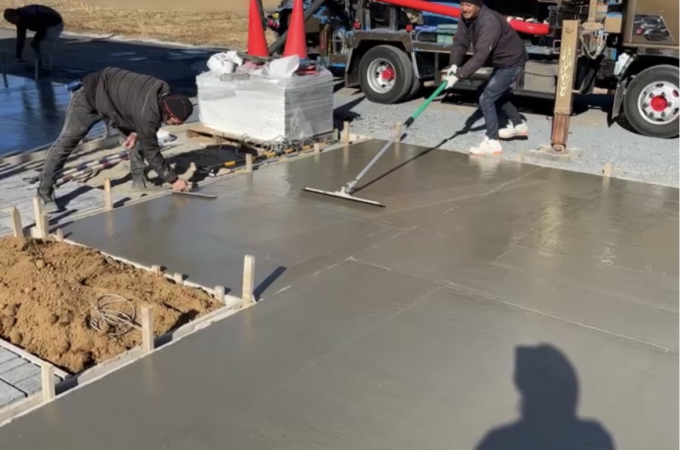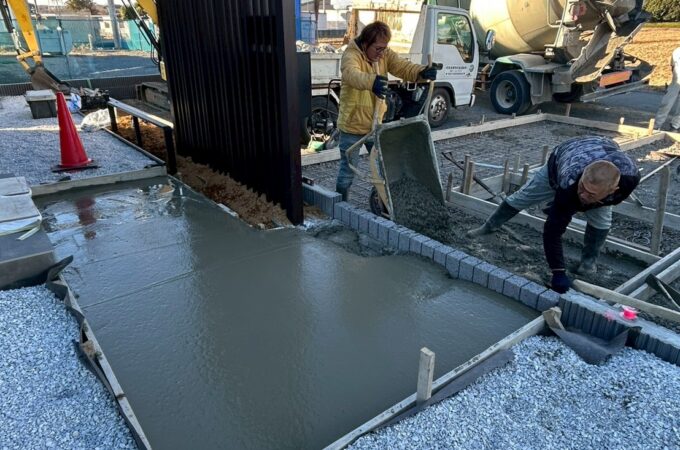 土間コンクリート 打設 ★朝からはじめて 固まるまでにすっかり日が暮れてし...
