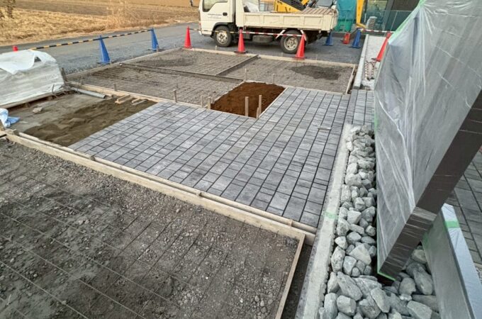 アプローチ 駐車場 型枠組み ★アプローチにはSBICのインターロッキング...