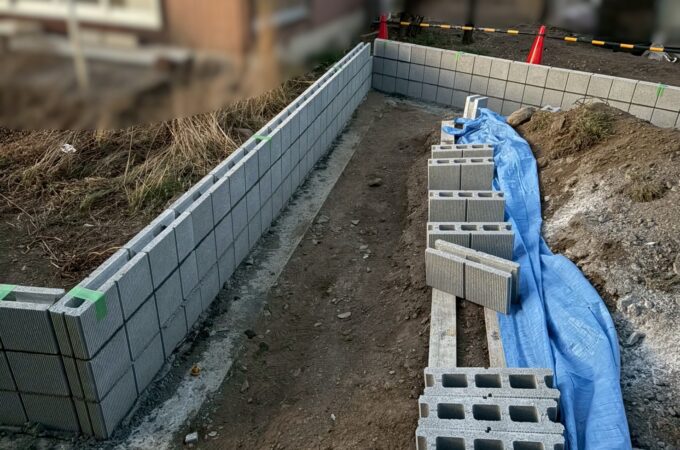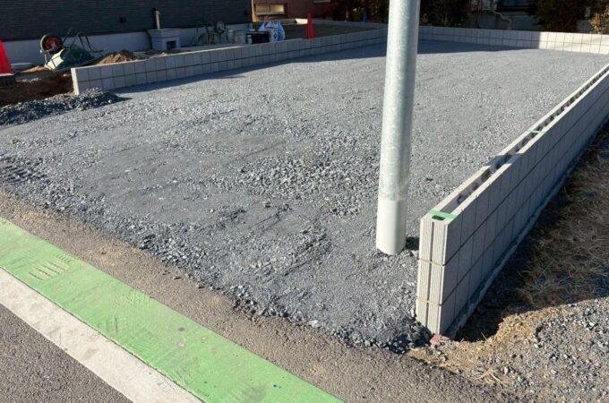 群馬県藤岡市 M様邸 着工 施工前 鋤取り ★敷地境界にブロックを積みます ...