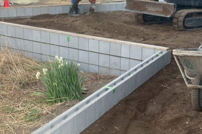 鋤取り 型枠組み ★家と駐車場の境界にもブロックを積みます ...